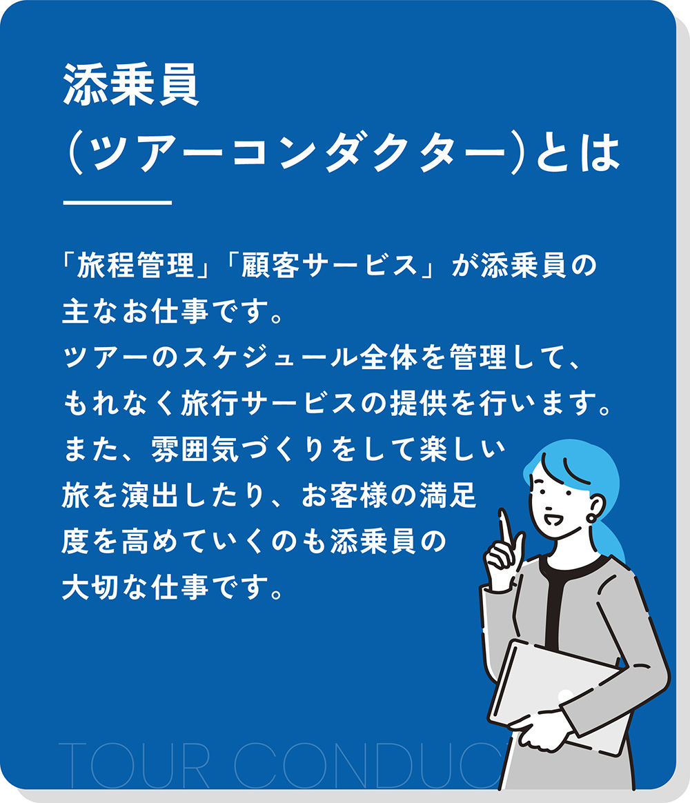 直接お客様の反応を見られること、一つのツアーを終えた時の達成感など、添乗の仕事はやりがいにあふれています。